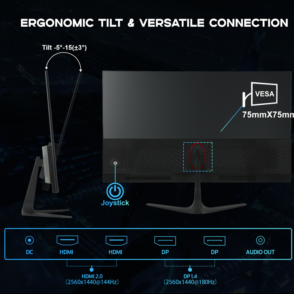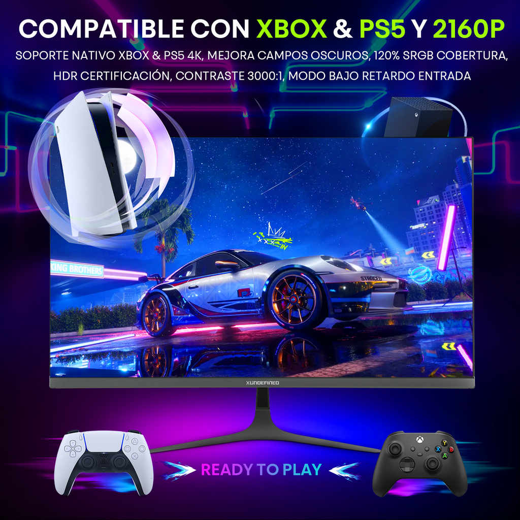 This 27-inch gaming monitor from XUNDEFINED features QHD 2K (1440P) high-definition resolution paired with an IPS panel, delivering images with delicate colors, clear transparency, and accurate detail reproduction. Its core advantage lies in being specifically optimized for the 1440P mode of XBOX and PS gaming consoles: simply connect the monitor to your console, and it will automatically match the optimal 1440P resolution without manual adjustment—fully presenting the detailed visuals of console games for a more direct and smooth immersive experience.