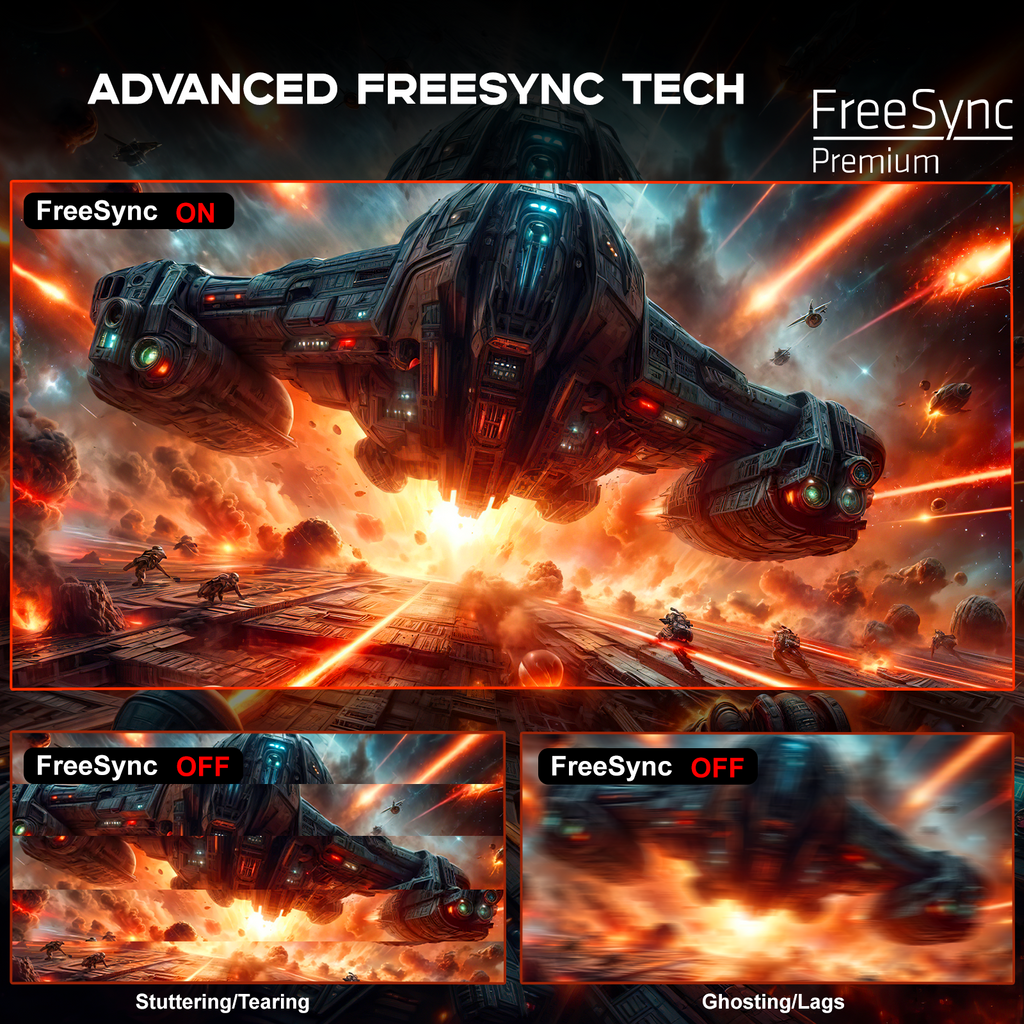 Equipped with an 180Hz high refresh rate and 1ms ultra-fast response time, the monitor eliminates motion blur and ghosting in fast-moving gaming scenes. Whether you’re engaged in competitive battles on a console or precise operations on a PC, it captures every dynamic detail with exceptional clarity, ensuring responsive and precise control. Additionally, it is compatible with FreeSync/G-Sync technology, effectively resolving issues like screen tearing and stuttering to further enhance visual smoothness.