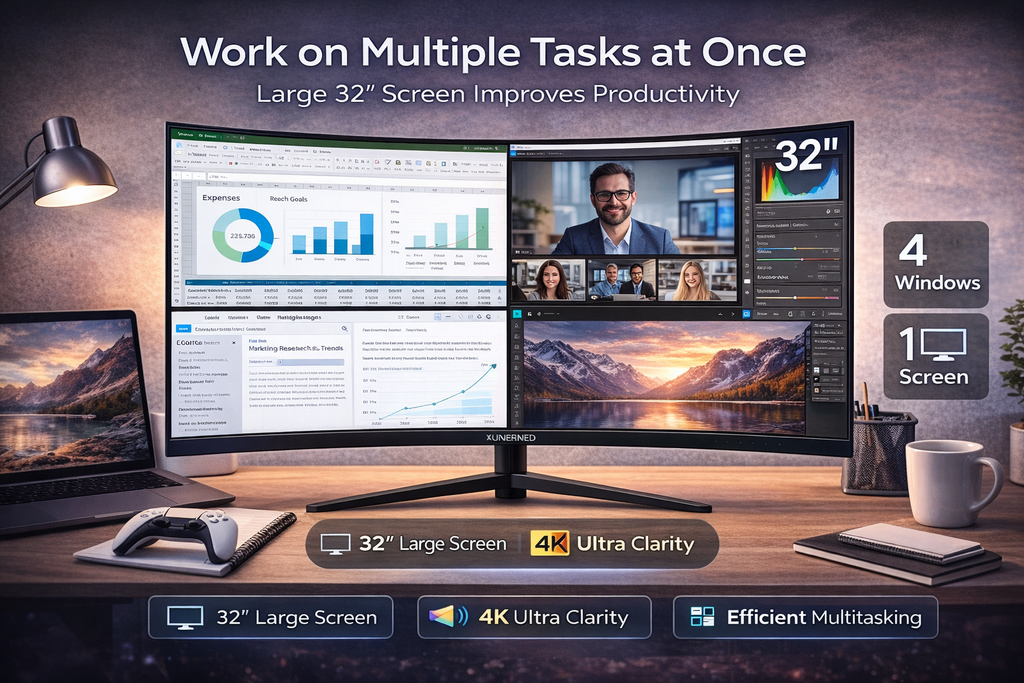 **Monitor Curvo 4K de 32 Pulgadas: Inmersión Total para Tu Creatividad, Trabajo y Entretenimiento** Diseñado para quienes buscan más que una pantalla tradicional. Este monitor curvo de 32 pulgadas no solo te ofrece la espectacular resolución 4K UHD, sino que su diseño envolvente te coloca en el centro de la acción, mejorando la concentración en el trabajo y llevando tus juegos y películas a un nuevo nivel de realismo. Es el compañero multifuncional perfecto que se adapta a tu ritmo de vida en México, ya sea retocando fotos en CDMX, gestionando proyectos desde Guadalajara o disfrutando de una noche de series en Monterrey. **PUNTOS DESTACADOS:** * **Resolución 4K UHD (3840 x 2160):** Cuatro veces más definición que Full HD para detalles increíbles. * **Diseño Curvo Inmersivo:** Envuelve tu campo visual para una experiencia más cómoda y realista. * **Colores Vibrantes:** Cobertura del 120% sRGB para trabajos creativos precisos. * **Contraste Profundo 3000:1:** Negros más intensos, ideal para cine y juegos con escenas oscuras. * **Listo para Consolas Next-Gen:** Compatible con modo 2160P (4K) en Xbox Series X/S y PS5. * **Cuidado Ocular:** Tecnología Low Blue Light y Flicker-Free para largas jornadas. --- ### 1. Para Creadores Visuales: Precisión y Amplitud Curva Si eres diseñador, editor de video o gestionas contenido para e-commerce, necesitas espacio y precisión. La pantalla curva de 32 te permite tener una visión periférica más cómoda de tus líneas de tiempo y herramientas sin girar tanto la cabeza. * **Detalle Infinito en 4K:** Amplía tus diseños sin perder nitidez. Al editar fotos de productos para vender en línea, las texturas y brillos metálicos se ven tan claros como si los tocaras. * **Color Excepcional:** Con una cobertura del 120% sRGB, reproduce con exactitud cada tono, desde la piel en los videos hasta los matices de un atardecer. * **Contraste para Profesionales:** La relación de contraste de 3000:1 es fundamental para editar escenas oscuras o de suspenso, manteniendo la información en las sombras bien definidas sin que se vean grisáceas. ### 2. Para Trabajo Remoto: Comodidad Ergonómica en Jornadas Largas ¿Revisando hojas de cálculo complejas o en videollamadas interminables? La curvatura del monitor ayuda a reducir la fatiga ocular, ya que la distancia focal a los bordes de la pantalla es más uniforme que en un monitor plano de este tamaño. * **Multitarea Eficiente:** La enorme pantalla de 32 4K es como tener cuatro monitores Full HD en uno. Abre Excel, tu correo y Zoom al mismo tiempo sin cambiar de ventana. Los textos pequeños se mantienen nítidos. * **Protege tu Vista:** Trabaja hasta tarde sin sufrir sequedad o fatiga gracias a la tecnología de baja luz azul y sin parpadeo. * **Conectividad Versátil:** Puertos HDMI y DisplayPort para cambiar fácilmente entre tu laptop de trabajo y tu PC personal, manteniendo el escritorio ordenado. ### 3. Entretenimiento en Casa: Tu Centro de Juegos y Cine Personal Transforma tu sala en un cine o una arena de eSports. La pantalla curva genera una sensación de profundidad que te atrapa en el contenido. * **Gaming en 4K Real:** Totalmente compatible con el modo de salida 2160P de consolas como XBOX Series X/S y PlayStation 5. Disfruta de tus juegos favoritos con la máxima definición gráfica. * **Experiencia Cinematográfica:** Gracias al alto contraste de 3000:1 y la curvatura, las películas se sienten más envolventes, con negros profundos en escenas nocturnas y paisajes soleados llenos de detalle. * **Juego Fluido:** La tecnología FreeSync elimina los cortes y desgarros en la imagen para una experiencia suave en juegos casuales como FIFA o aventuras de mundo abierto. ### Se adapta a tu espacio Ideal para cualquier hogar en México. S